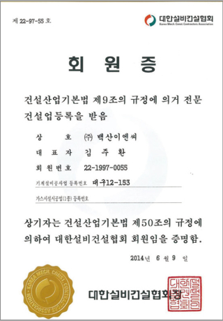 6. Membership Certificate of the Korea Association of Mechanical Contractors 0 file