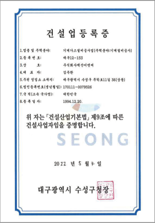 7. Construction Business Registration Certificate (Mechanical Gas Installation Business) 0 file